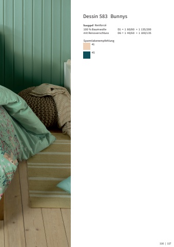 Dessin 583 Bunnyskaeppel Renforc%u00e9100 % Baumwolle mit ReissverschlussD1 = 1 80/80 + 1 135/200D6 = 1 40/60 + 1 100/135Spannlakenempfehlung4145116 | 117