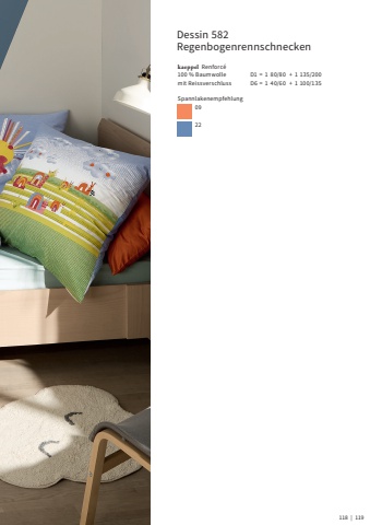 Dessin 582Regenbogenrennschneckenkaeppel Renforc%u00e9100 % Baumwolle mit ReissverschlussD1 = 1 80/80 + 1 135/200D6 = 1 40/60 + 1 100/135Spannlakenempfehlung0922118 | 119