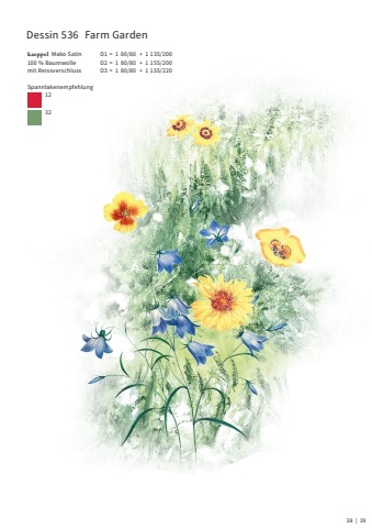 Dessin 536 Farm Gardenkaeppel Mako Satin100 % Baumwolle mit ReissverschlussD1 = 1 80/80 + 1 135/200D2 = 1 80/80 + 1 155/200D3 = 1 80/80 + 1 155/220Spannlakenempfehlung123238 | 39