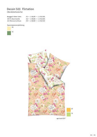 Dessin 503 Flirtation (Wendebettw%u00e4sche)kaeppel Mako Satin100 % Baumwolle mit ReissverschlussD1 = 1 80/80 + 1 135/200D2 = 1 80/80 + 1 155/200D3 = 1 80/80 + 1 155/220Spannlakenempfehlung0632apricot 637073154 | 55