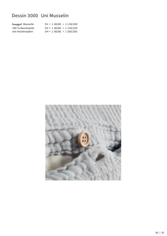 Dessin 3000 Uni Musselinkaeppel Musselin100 % Baumwolle mit Holzkn%u00f6pfenD1 = 1 80/80 + 1 135/200D3 = 1 80/80 + 1 155/220D4 = 2 80/80 + 1 200/20080 | 81
